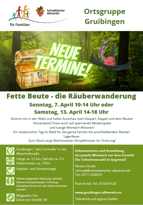Familienwanderung „Fette Beute – die Räuberwanderung“ -Achtung, Termin am 10.3.fällt aus-