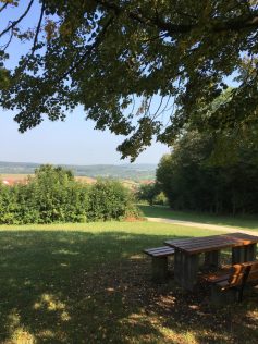 Durch Streuobstwiesen und den Teilort Balzholz geht es ein kleines Stück leicht aufwärts bis zum Waldrand. Dort oben angekommen, öffnet sich der Blick auf Beuren und die dahinter liegende weite Landschaft, welche uns fast den ganzen Weg über begleiten wird.